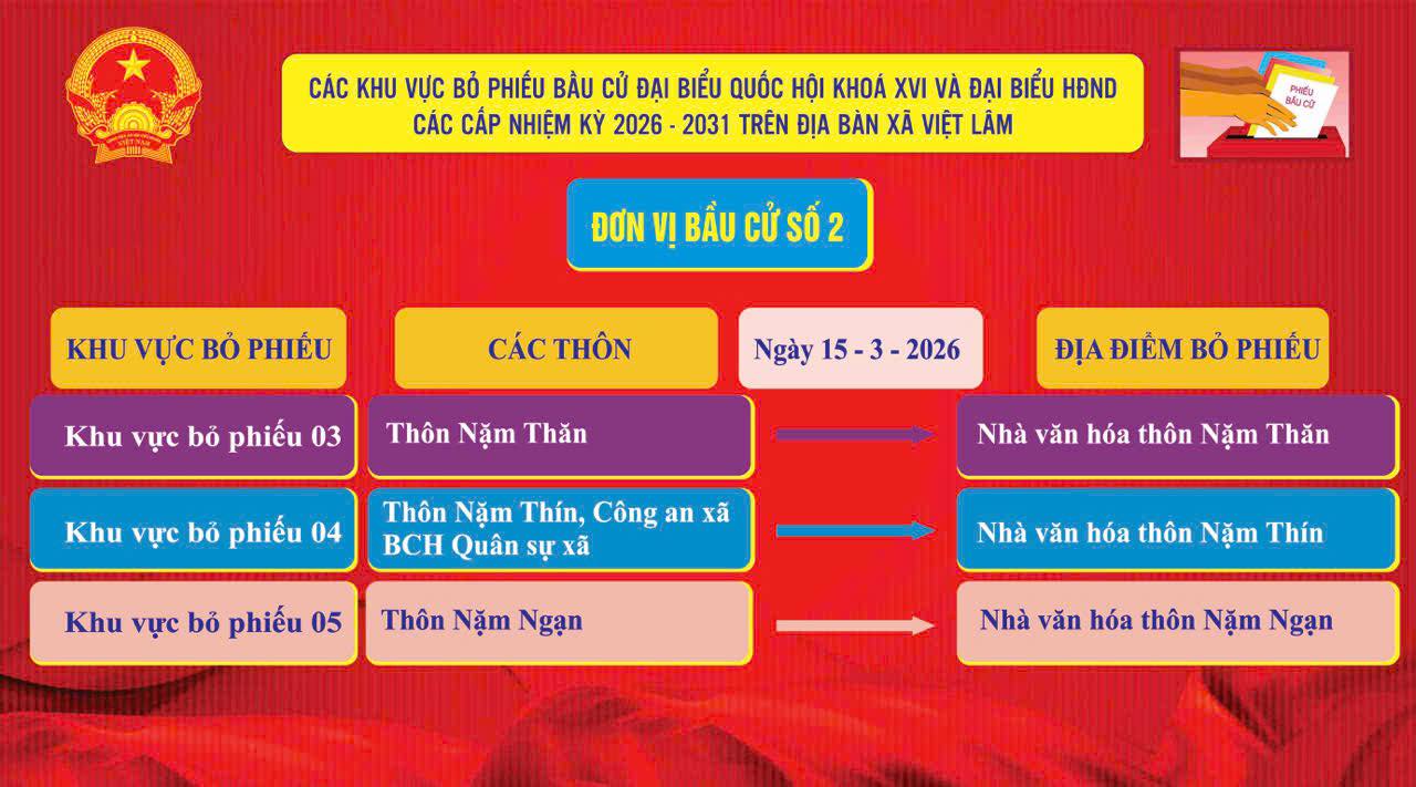 Danh sách cụ thể các đơn vị bầu cử, khu vực bỏ phiếu sẽ được niêm yết công khai tại trụ sở UBND xã, nhà văn hóa các thôn và các địa điểm sinh hoạt cộng đồng để cử tri theo dõi.