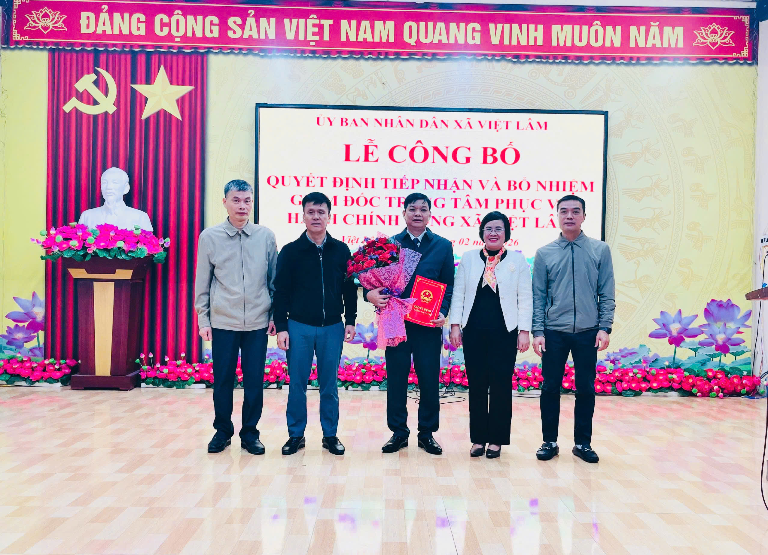 Sáng ngày 13/02/2026, UBND xã Việt Lâm đã long trọng tổ chức Lễ công bố Quyết định tiếp nhận và bổ nhiệm Giám đốc trung tâm phục vụ Hành chính công